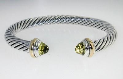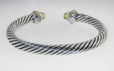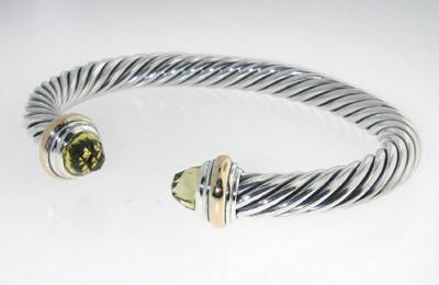 David Yurman Silver,14K Gold, Lemon Citrine Bangle.