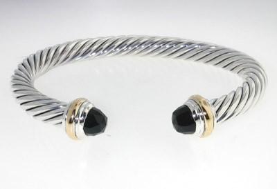 David Yurman Silver/14K Yellow Gold, Onyx Bangle. The total Bangle's weight is 40.2 grams. The size of Onyx: 6 mm The measurement of the inside bangle is 55 x 45 mm, Thickness: 6 mm.