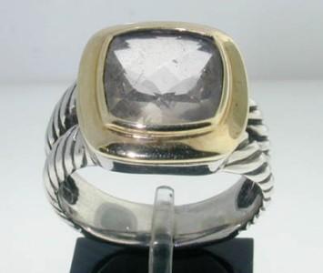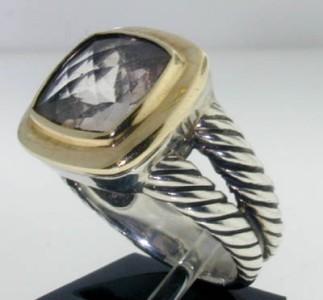 This is a Wonderful David Yurman Silver & 18K Yellow Gold Quartz Ring. The total ring's weight is 9.1 grams. The size of ring's face: 16 x 16 mm. The size of the ring is 7.75. This is a beautiful ring!