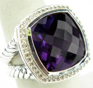 David Yurman Silver,Amethyst & Diamond Ring.