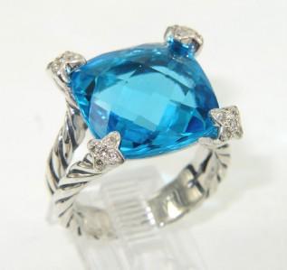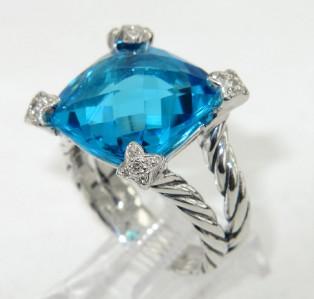 David Yurman Silver, Blue Topaz & Diamond Ring