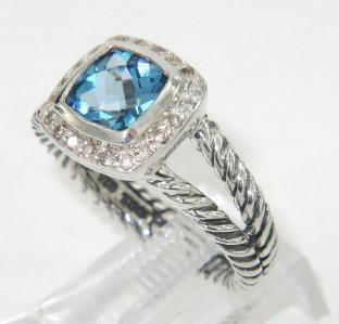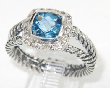 David Yurman Silver Blue Topaz & Diamond Ring