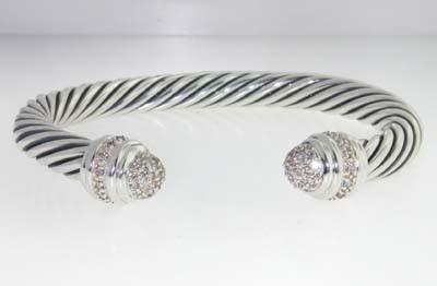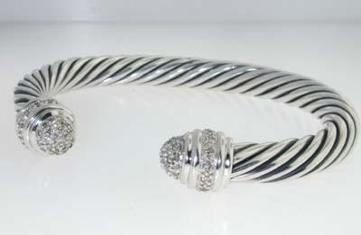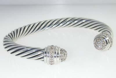 David Yurman silver Diamond Bangle. Bangle's Weight: 43.5 grams. The weight of diamond: 0.66cts, H color,VS clarity. The measurements of the Inside Bangle is 57X45mm and the thickness is 7 mm. There is D.Y , Stemp 925" on it.