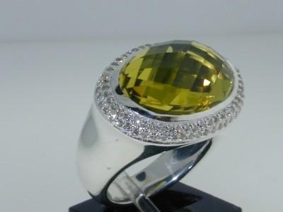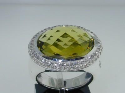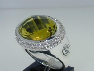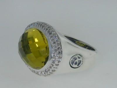 This is a Wonderful David Yurman Silver Diamond Lemon Citrine Ring! The total ring's weight is 14.3 grams. The total diamonds weight are approximately 1 cts, I color and SI clarity. The size of the Lemon Citrine is 16x12 mm. The measurements of surface of the ring are 22(L)x17(W)x10(H) mm. The size of the ring is 6". There is "D.Y 925" stamp on the ring. This is 100% authentic David Yurman ring!!