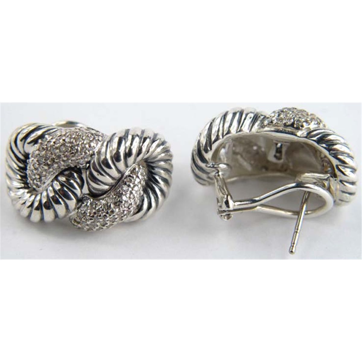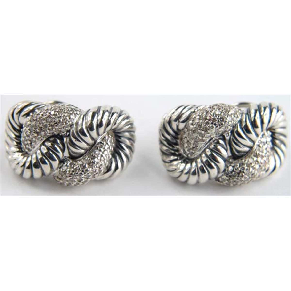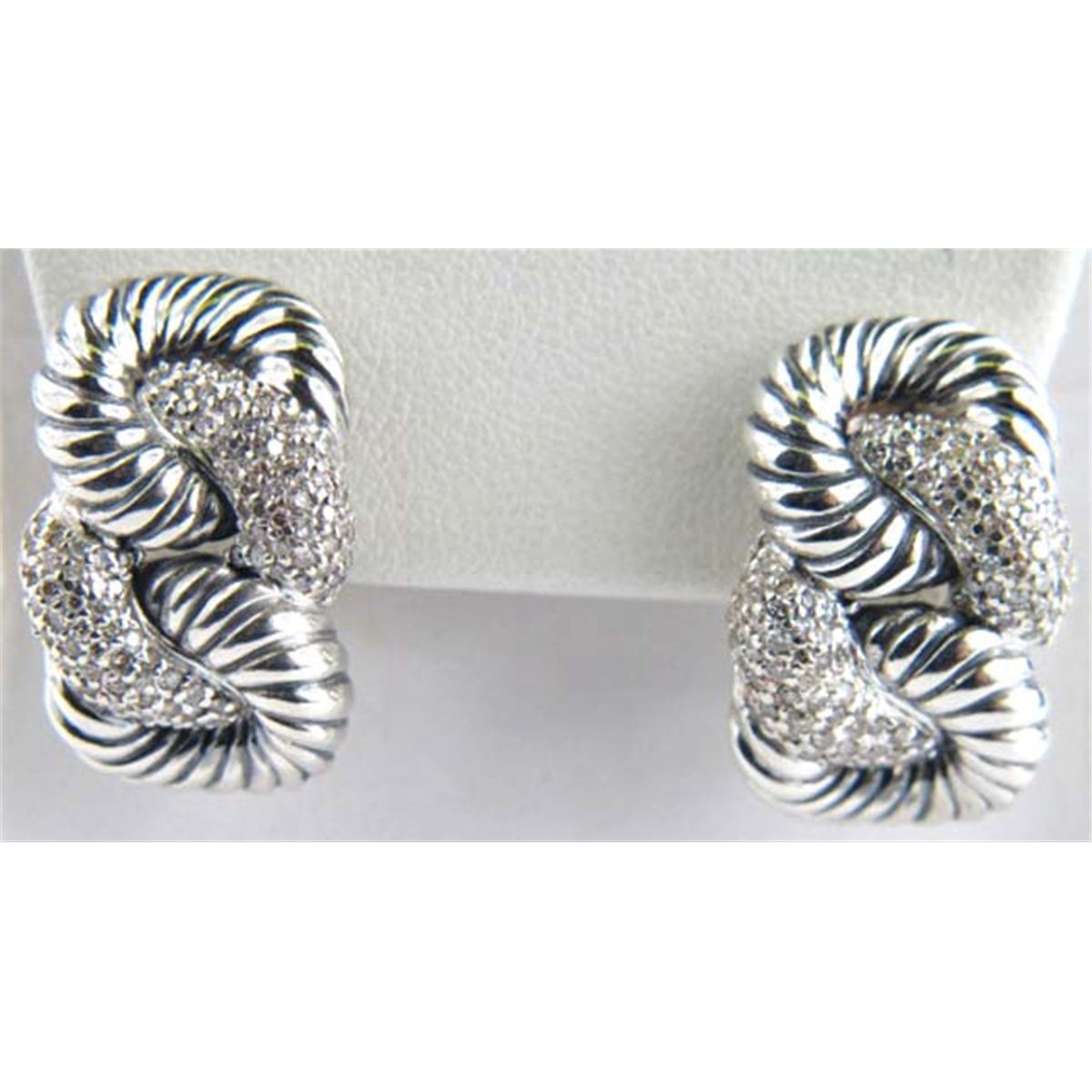David Yurman Silver Diamond Earring. The total weight of the earrings 15 grams. The length of the earrings 25 x 15 mm and 5 mm in thickness.The diamonds are 1ct approximately.