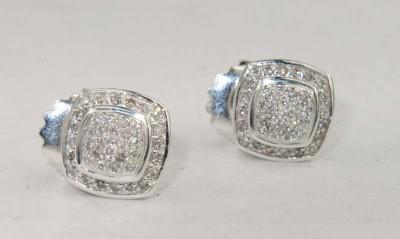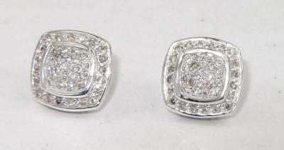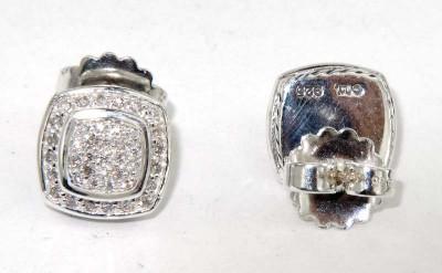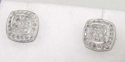 David Yurman Silver Diamond Earrings. Earring's weight: 8 grams. The weight of Diamond: 1.02 cts.,approximately. I color, SI clarity. The measurements of the earrings is 11 x 11 mm and 6 mm in thickness.