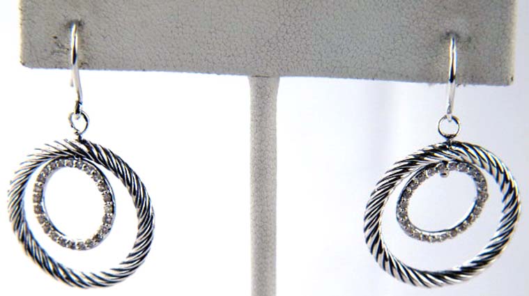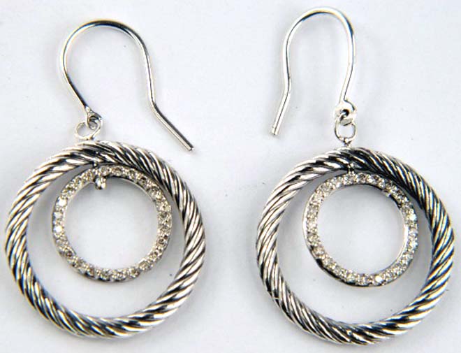 David Yurman Silver Diamond EarringsThe total earrings weight is 6.8 grams.The total weight of diamond : 0.50 cts.The size of earrings: 1.5" long.