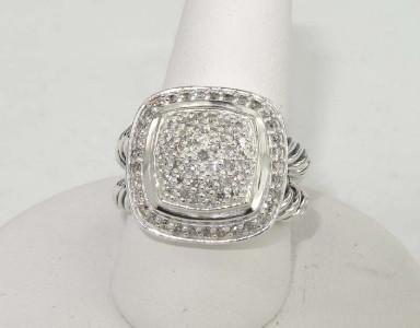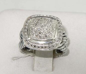 David Yurman Silver Diamond Ring. The total ring's weight is 9.8 grams. The total diamond weight is 1 cts.,approxmiately. I color SI clarity. The size of the ring is 6. The measurement of ring's surface is 15 x 15 mm and 7 mm thick.
