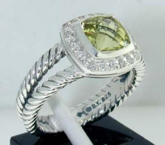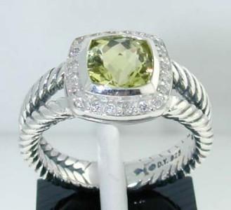 This is a Wonderful David Yurman Silver Lemon Citrine & Diamond Ring. The total ring's weight is 5.8grams. The total weight of the diamond is 0.2 cts approximately, I color SI clarity. The size of the Lemon Citrine is 7x7 mm. The size of the ring is 6. The measurement of the face of the ring is 10x10 mm. There is a stamp "750" stamp on it. This is a beautiful ring!