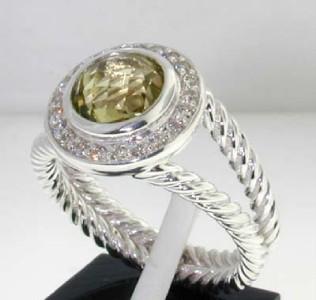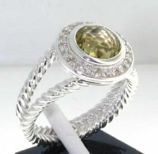 David Yurman Silver Lemon Citrine Diamond Ring. The total ring's weight is 6.4 grams. The total weight of the diamond is 0.28 cts approximately, H color VS clarity. The size of the Lemon Citrine is 8x8 mm. The size of the ring is 6.75. There is a stamp DY, 925. This is a beautiful ring!