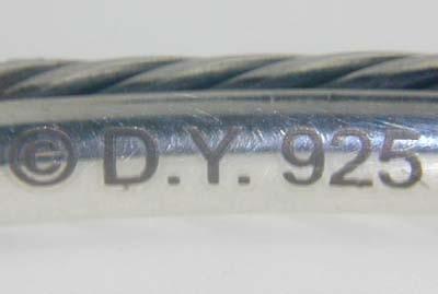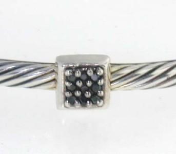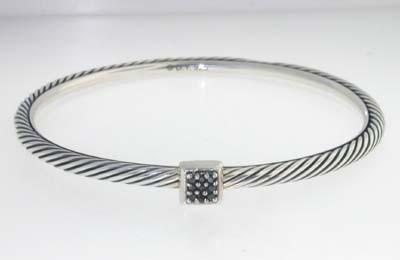 David Yurman Silver, Onyx Bangle. The total Bangle's weight is 11.5 grams. The total Onyx weight is 7 pts. The measurement of the inside bangle is 50x50 mm, Thickness: 2 mm. There is D.Y',925" stamp on it. This is a beautiful bangle!!