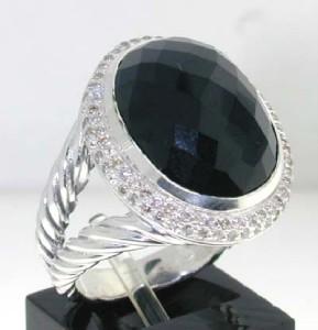 This is a Wonderful David Yurman Silver Onyx Diamond Ring.