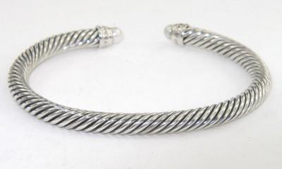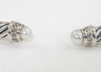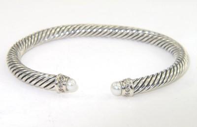 David Yurman Silver Pearl & Diamond Bangle