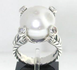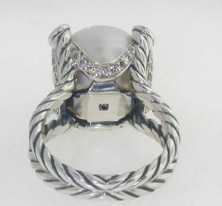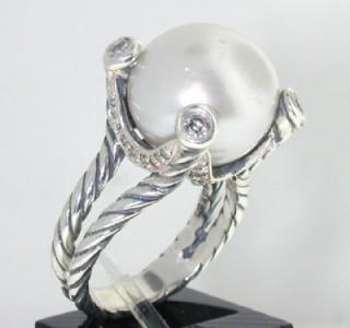 David Yurman Silver, Pearl & Diamond Ring