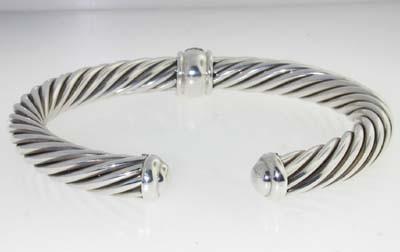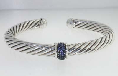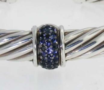 David Yurman Silver Sapphire Bangle. The total Bangle's weight is 41.0 grams. The total sapphire weight is 0.5 cts approxmiately. The bangle size is 60x43 mm. 7 mm in thickness. This is a really beautiful Bangle!!