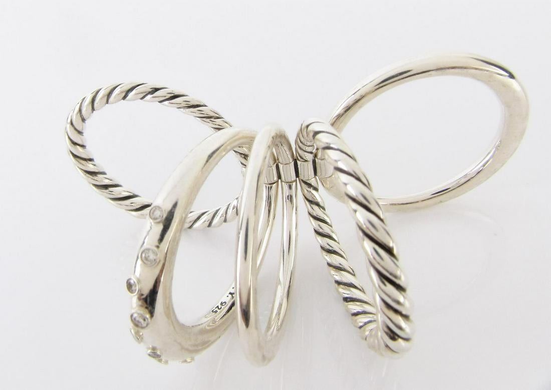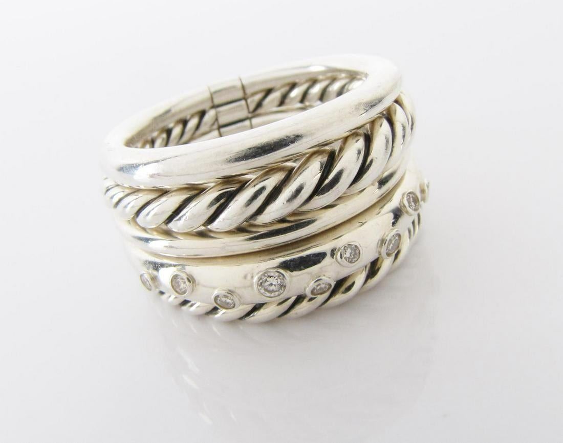 A David Yurman Stax Collection wide, five band ring in sterling silver, with mixed bands and accent diamonds, US size 9.25