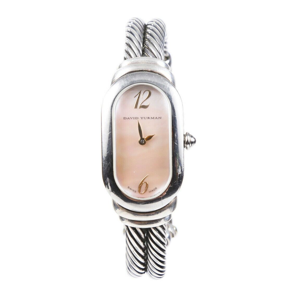 David Yurman Madison sterling silver and stainless steel watch features a mother of pearl face, quartz movement, hinged clasp fastening, and is water resistant up to 3atm.
