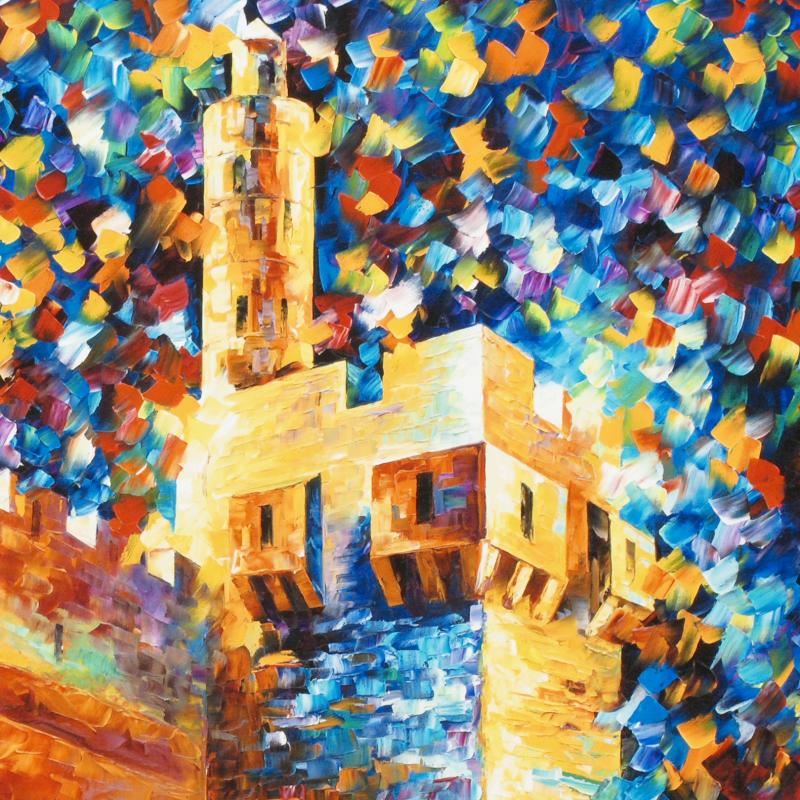 Leonid Afremov's masterful use of color and texture make his paintings unique collectibles that are sure to brighten any wall. "David's Citadel" is a limited edition giclee on stretched canvas, numbered and bears Afremov's authorized signature. This piece comes gallery wrapped and ready to hang. Includes Certificate of Authenticity! Measures approx. 24" x 18" (image).