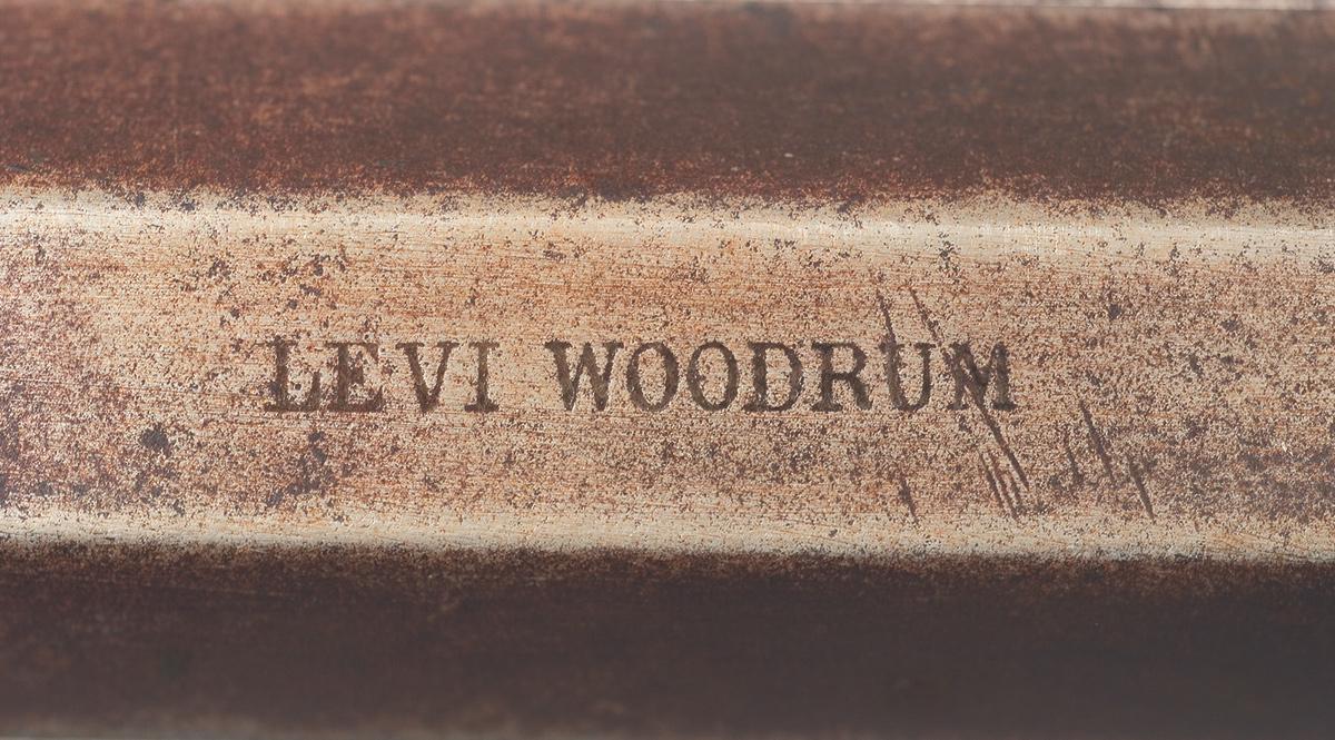 The light scroll engraved lock plate is marked "T. DAVIDSON & CO / CINCINNATI", with an engraved game scene behind the hammer. Tyler Davidson (1834-1866) is listed in Cincinnati, Ohio as a maker of lock plates. The barrel has fixed sights and is marked "LEVI WOODRUM" (the closest name listed is a Ezra Woodruff of Cincinnati, Ohio, circa 1820. Researchers could have misspelled the name). Brass furniture, replacement ramrod, and double set triggers. Half stock with crescent buttplate.