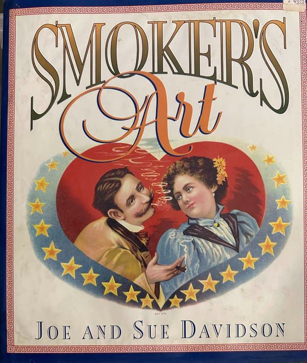 Davidson, Joe, The Art of the Cigar Label and Smokers Art, 1989 First edition. Hardcover with dust wrapper. 251 pp. Profusely illustrated in color. A superb monograph on the humble cigar label, the artists who created them and the collectors who now seek them out; plus 1997 hard bound edition and dust jacket with 252 pages of color illustrations by Joe and Sue Davidson.. Estimate $75 - 100.