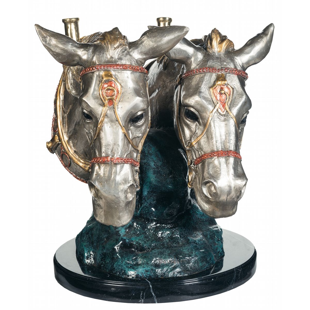 Davidson Signed Polychromed Bronze Bust of Two Draft Horses