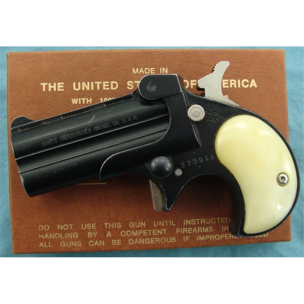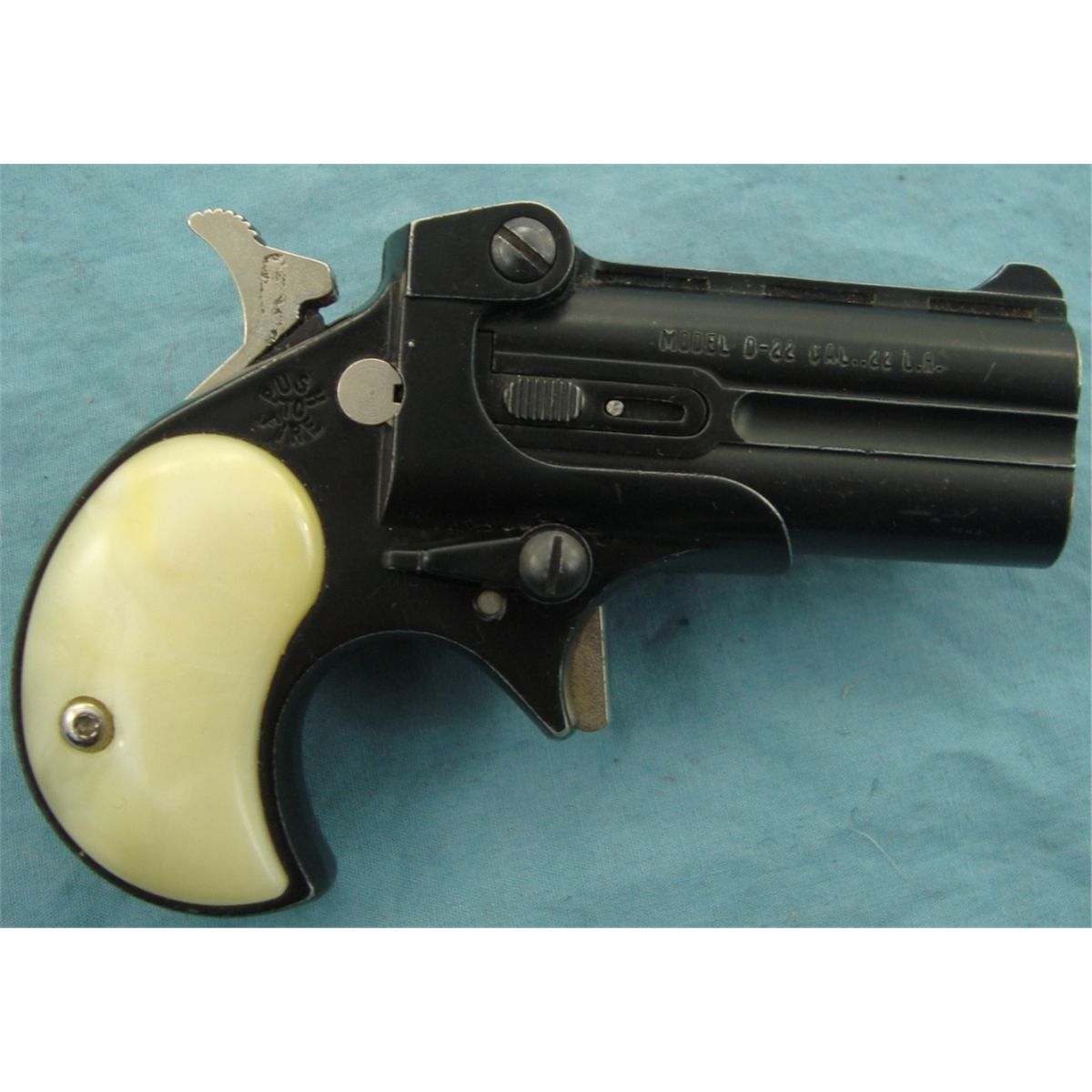 #373914; 22 LR. Model D-22. Blued metal w/mother of pearl style grips. In good lightly used condition w/original box.