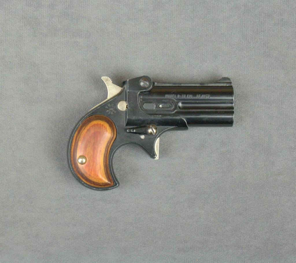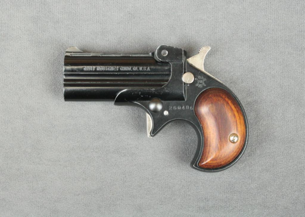 Davis Industries O/U Derringer Model D, .32 cal., 2-1/4” barrels, black finish, smooth wood grips, #260486. This gun is in overall fine condition showing the majority of its original finish, bores should clean to verygood, fine grips. Est.: $50-$100.