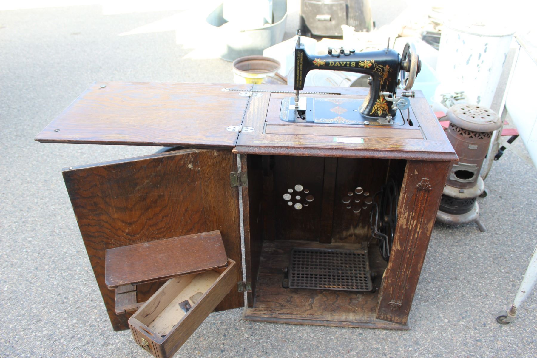 ** Davis Sewing Machine - Threaded, Untested; Cabinet - 23" x 17" x 29" Tall