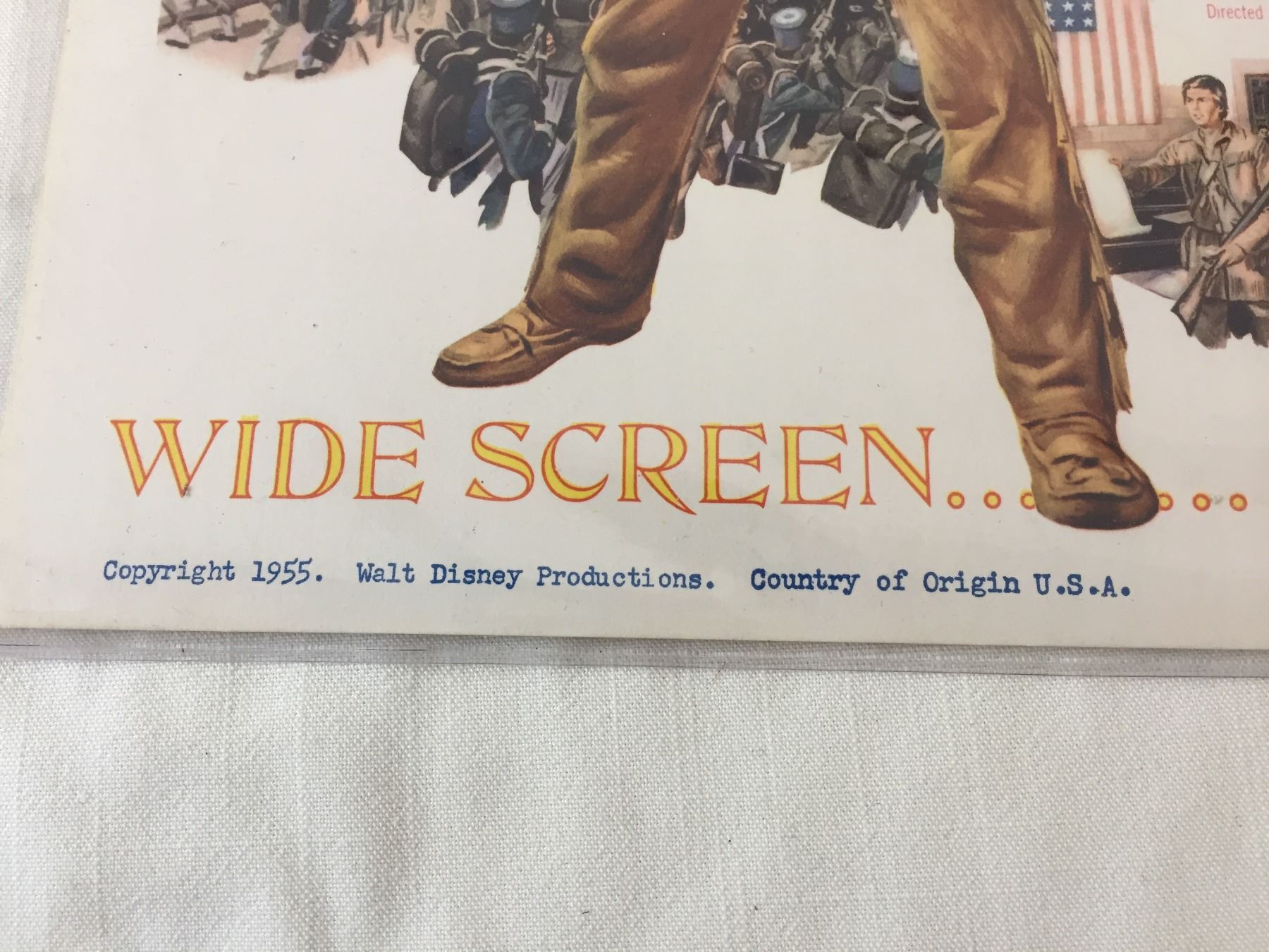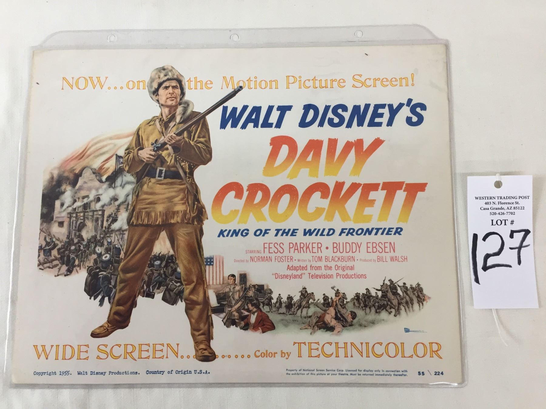 Description: Offered for sale in this lot is a nice Title Lobby Card featuring Fess Parker and Buddy Ebsen in the Walt Disney Movie, "Davy Crockett" in Technicolor. Maker: National Screen Service Corp.