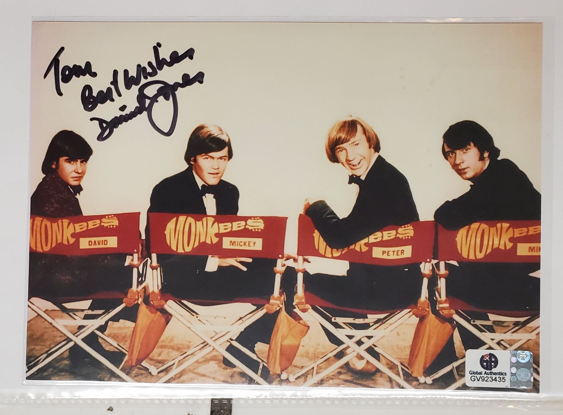 A 5” x 7” photograph signed by Davy Jones. Global Authentics authenticated the autograph, providing a COA numbered GV 92223435.