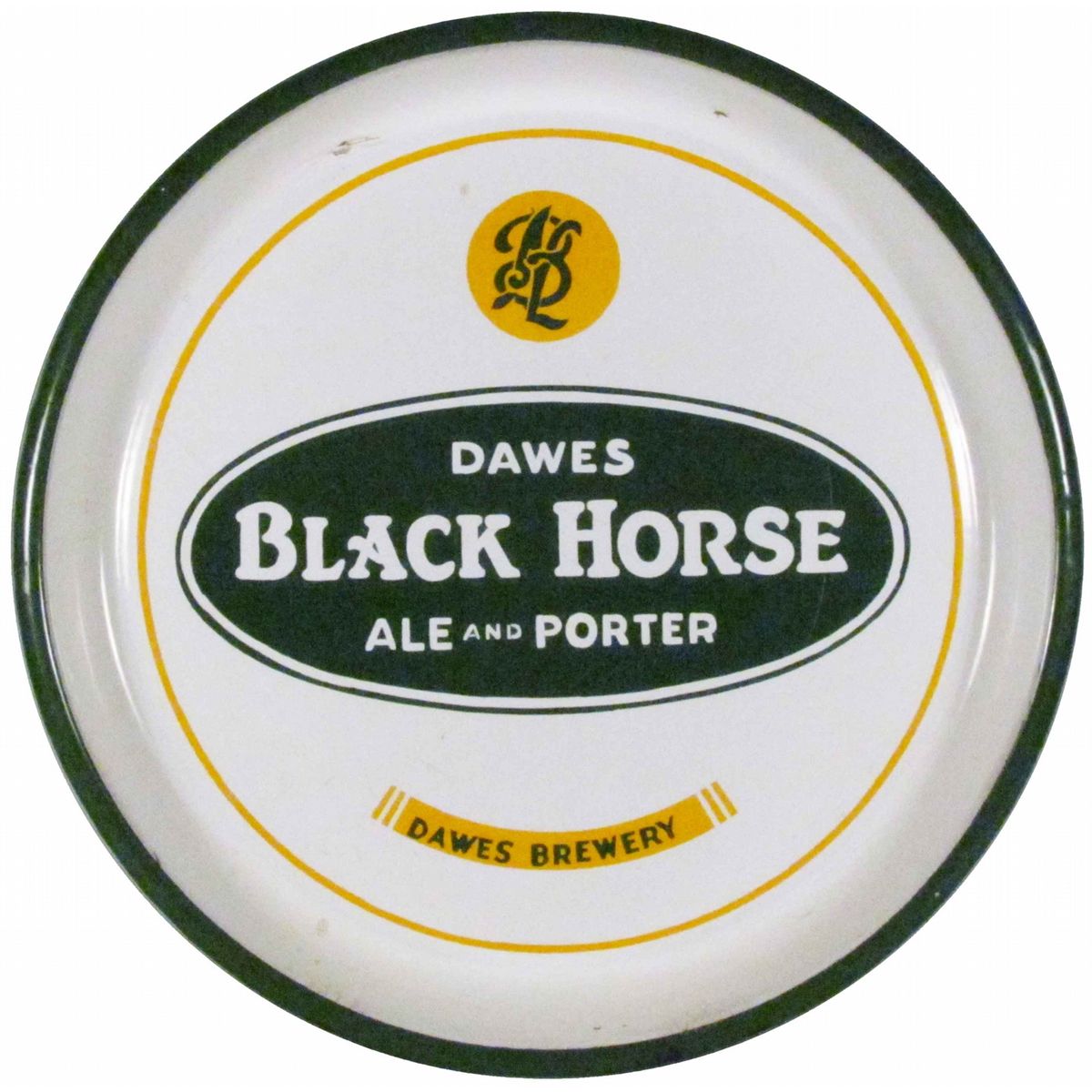 Black Horse Ale & Porter. Dawes Brewery Porcelain Serving Tray. Some minor crazing and some slight paint loss otherwise very good condition. 13 inch diameter.