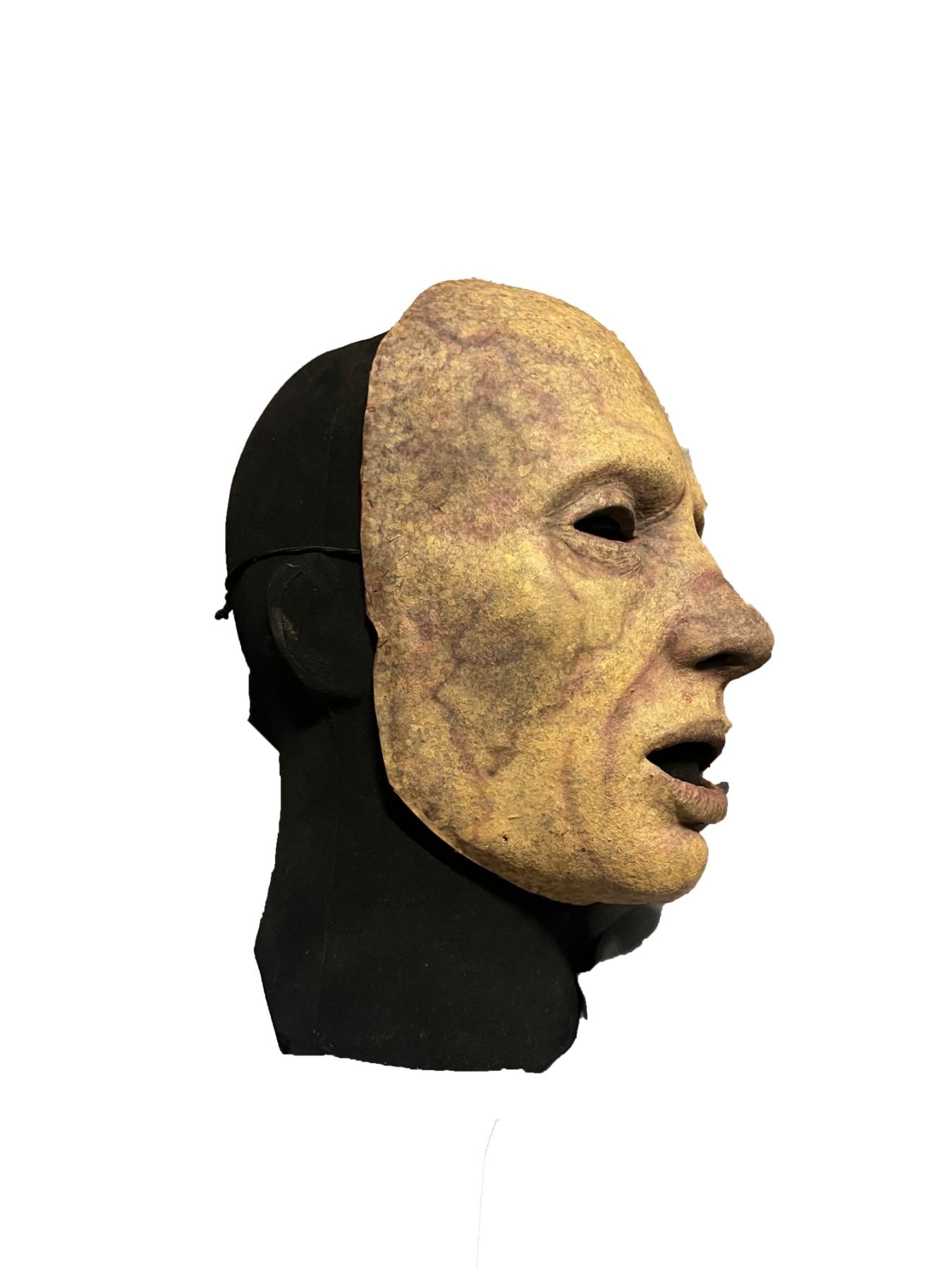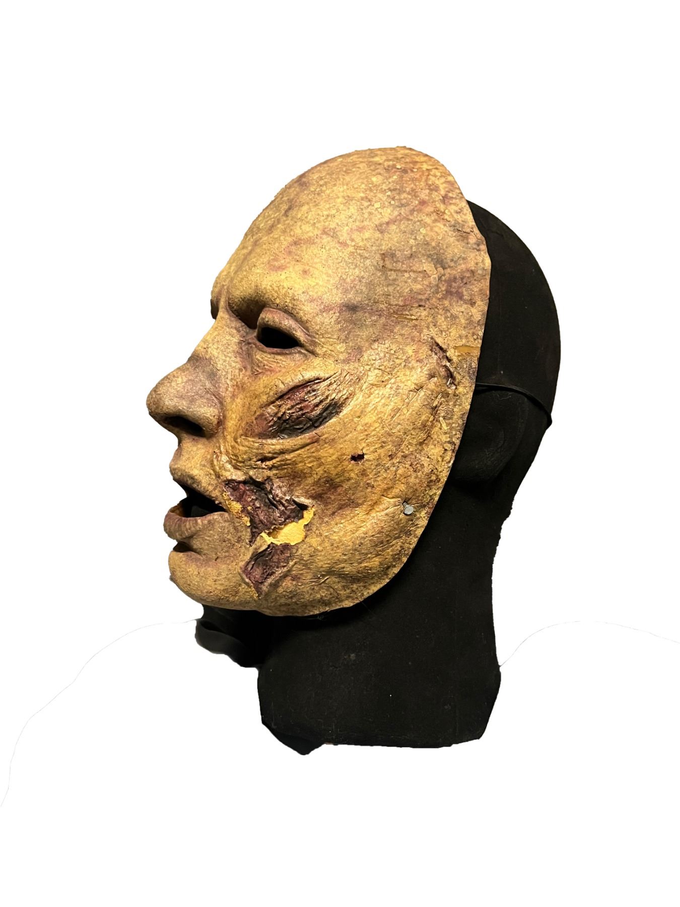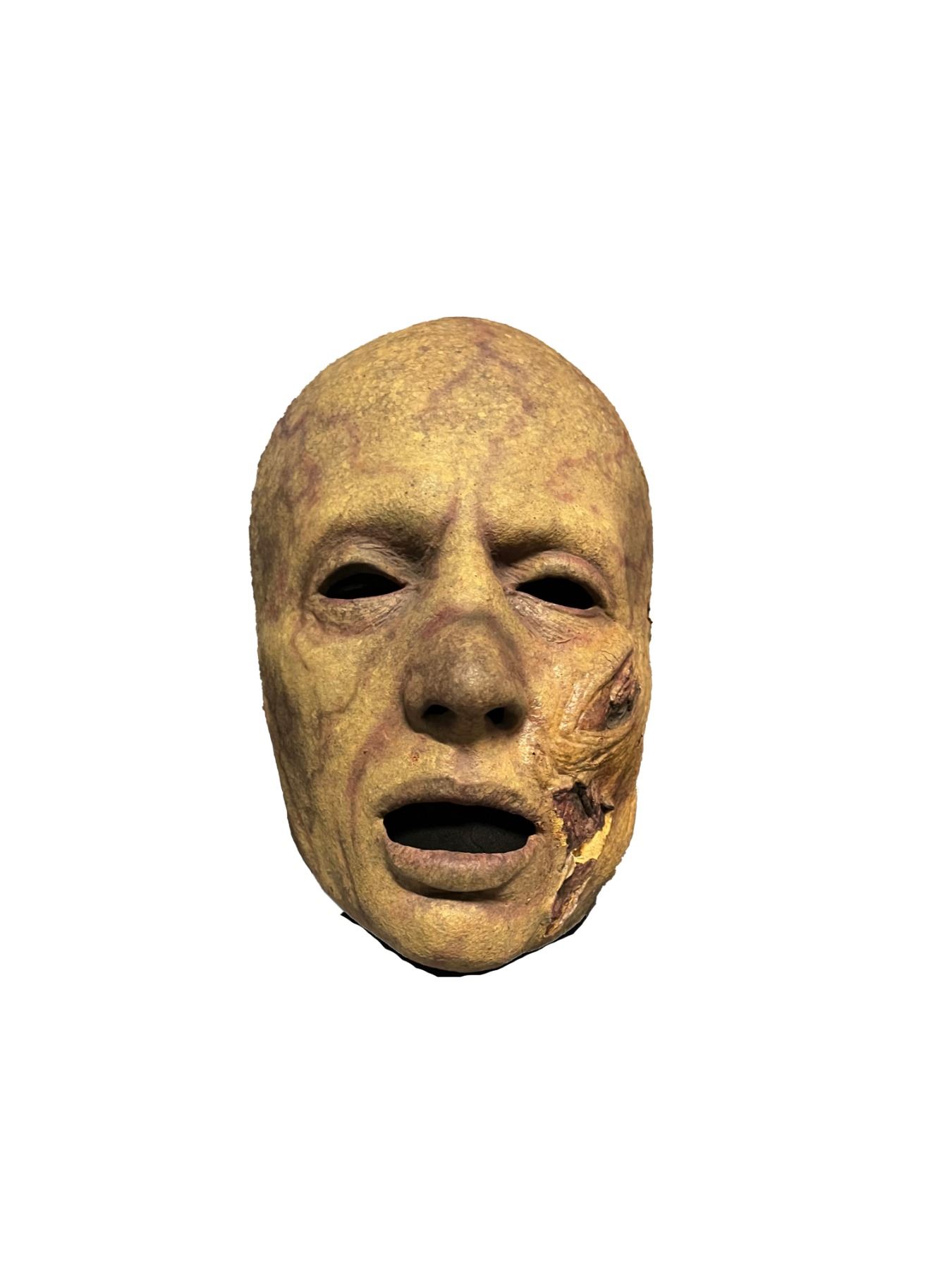This lot features a foam latex mask that resembles a disfigured and decayed face. To help age the mask, the production team used special sculpting techniques to denote age and discoloration. The mask also features hollowed eyes and an open mouth. Overall, the lot exhibits production wear but remains in great condition. This lot is accompanied by a Certificate of Authenticity from Studio Auctions.