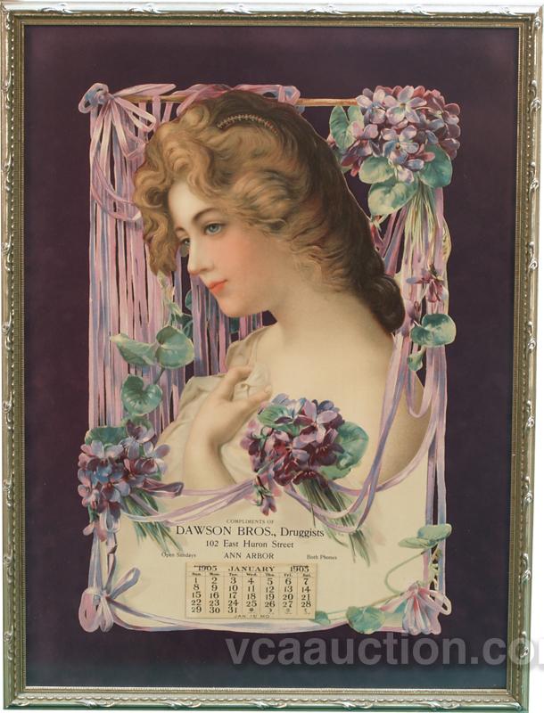 Dawson Bros., Druggists Die-Cut Cardboard Advertisement w/ 1905 Date Pad, In Frame - 16" x 22" Print - 11" x 17"