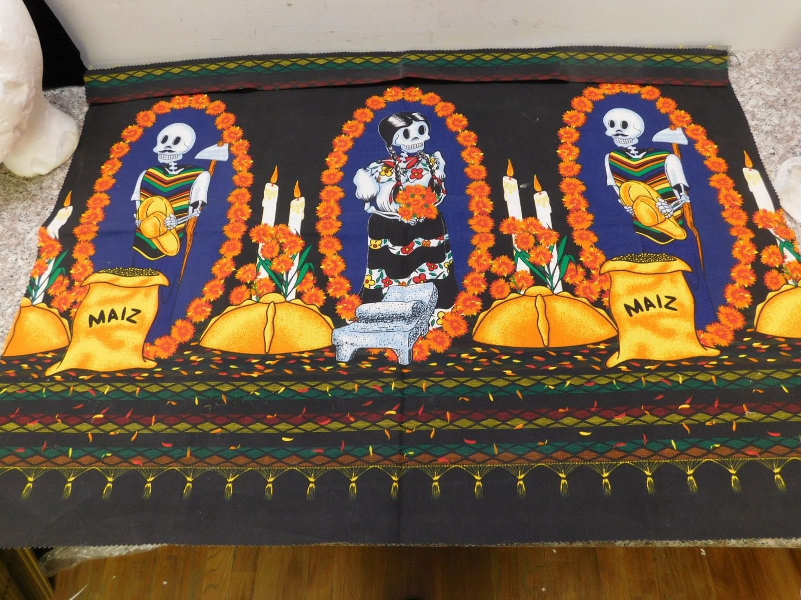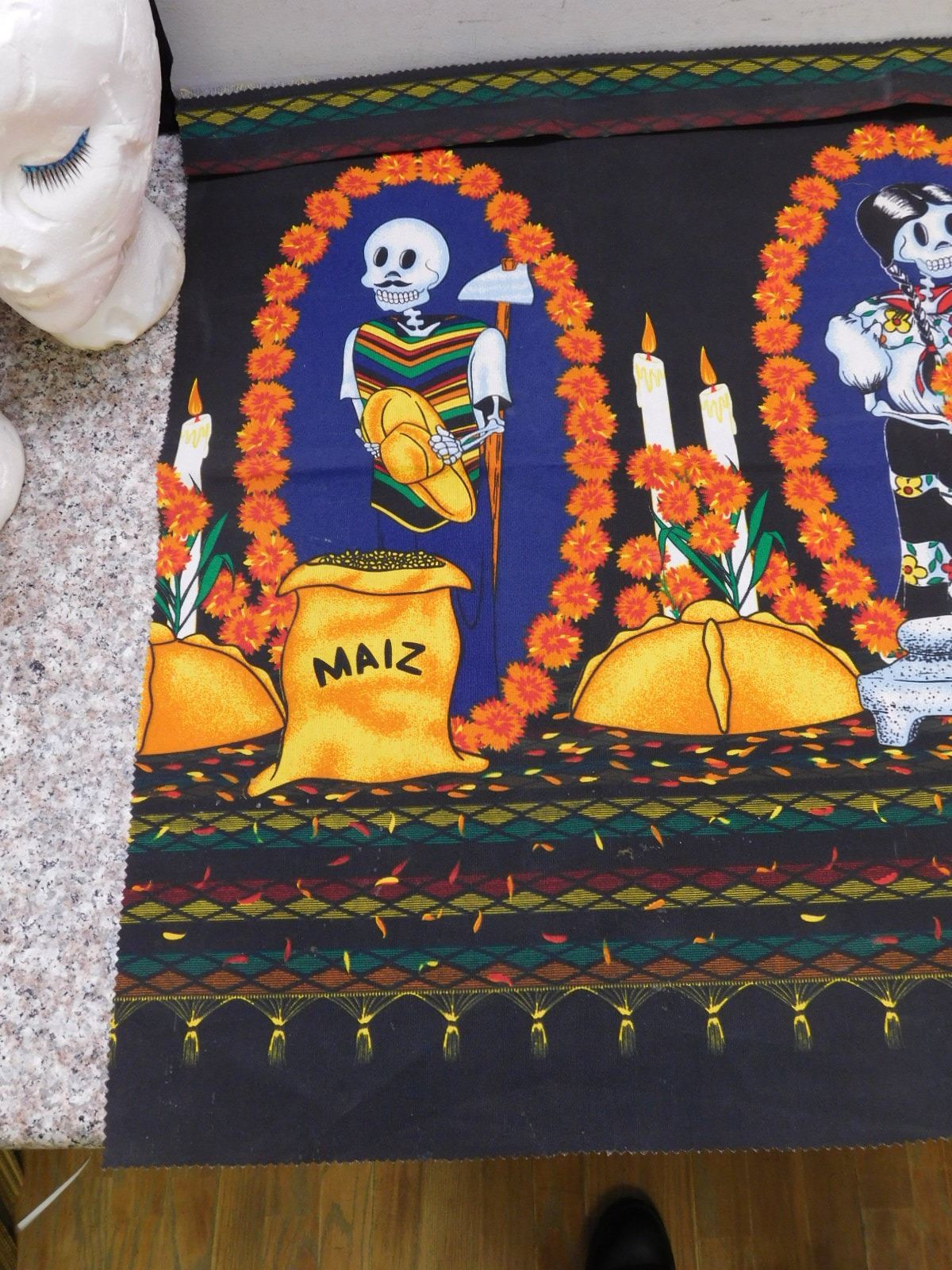 Day of the Dead Cloth Curtain Panel approx 28" x 36"