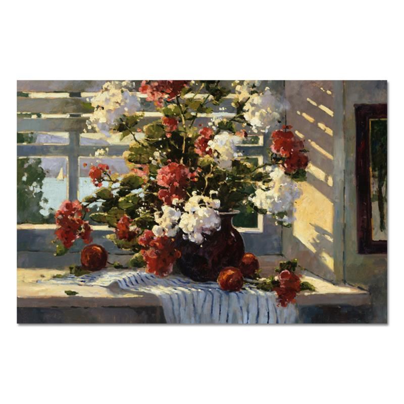 "Daybreak" is a hand embellished limited edition giclee on canvas by Marilyn Simandle, AP numbered 1/10 and hand signed by the artist. Includes Letter of Authenticity. Measures approx. 33" x 25" (image).