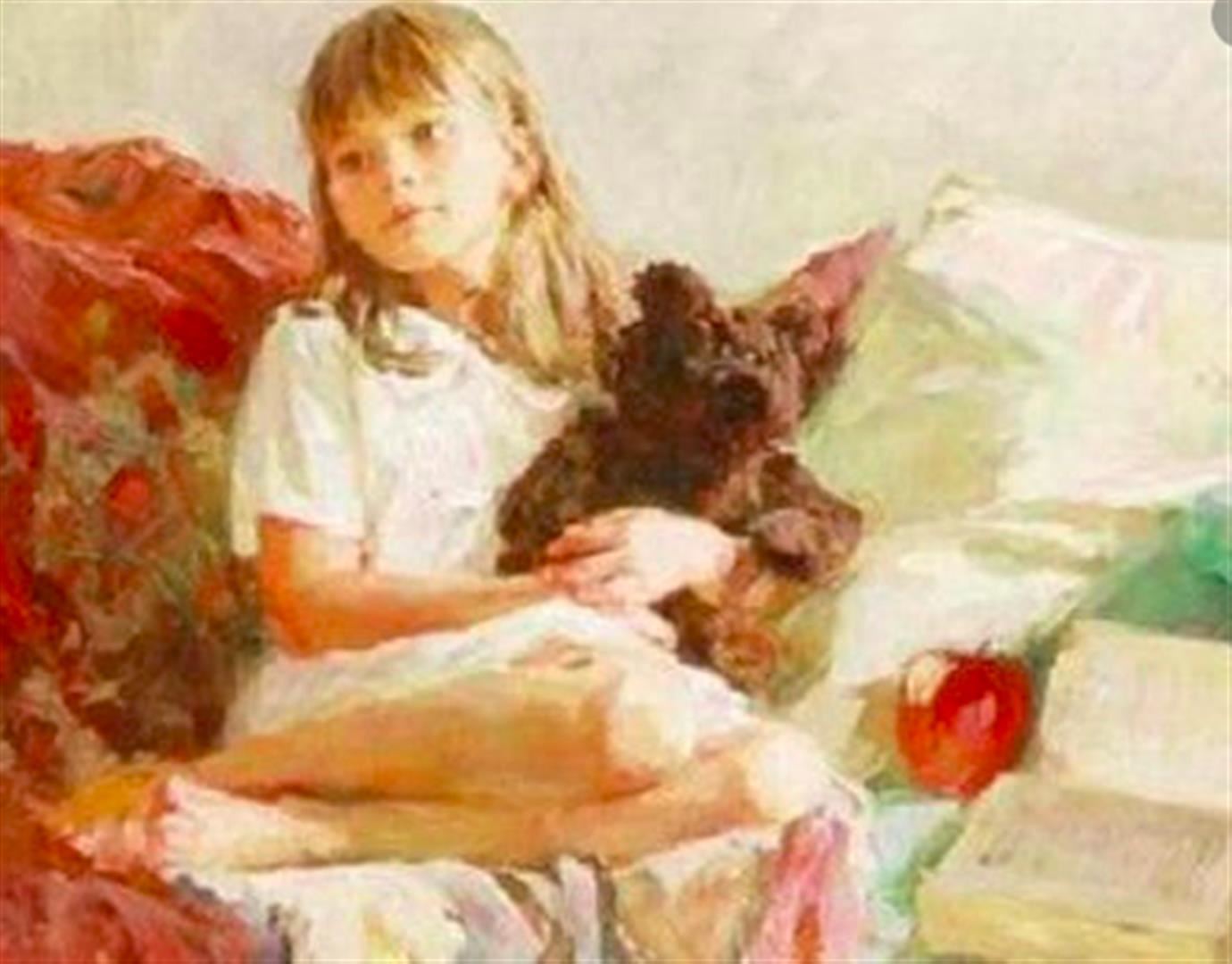 Daydreaming with Teddy by Garmash. Limited Hand Signed Embellished Giclee on Canvas. Dimensions: 30 x 24. Excellent Condition.