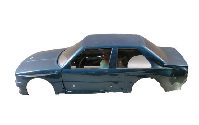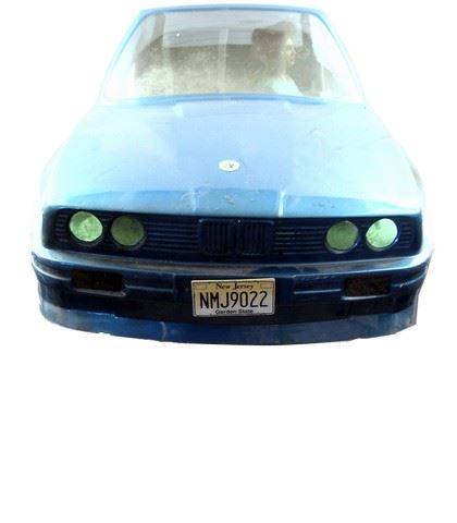 Created and featured on screen in the movie Daylight (1996) is this green plastic and wood framed, model BMW miniature car with model driver in the front seat from the fantastic New Jersey tunnel sequence in Daylight. This car was especially featured in the special effects sequences. This car was made without wheels for production and features New Jersey license plates. An incredible miniature created by the legendary team of Grant McCune Design. (approx. 41" x 17")