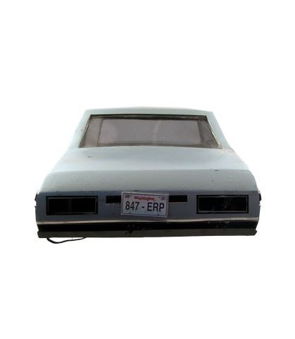 Created and seen on screen in the special effects sequences in the movie Daylight (1996) is this light blue fiberglass with wood frame, miniature car. This was made without wheels for production and features a Washington license plate. Made by the Award winning Grant McCune Design team exclusively for this film. (approx. 42" x 17")