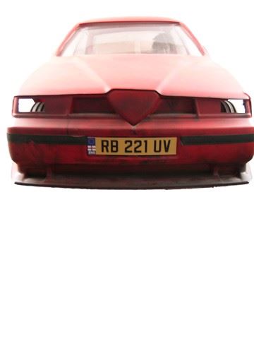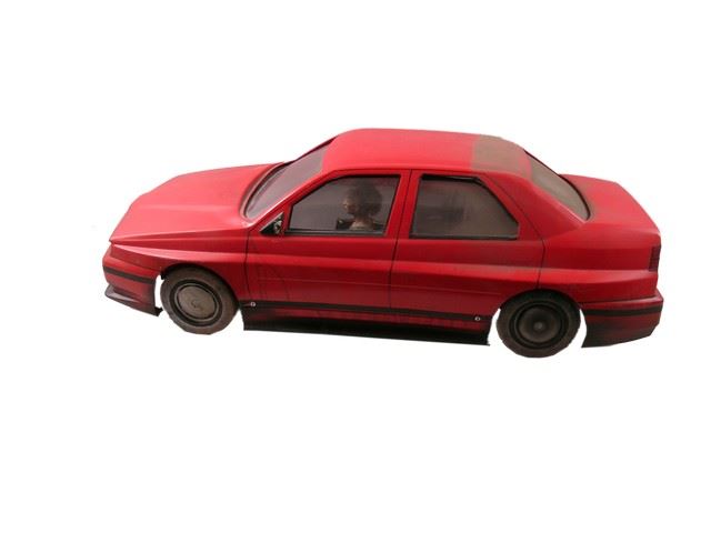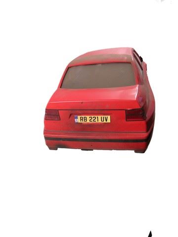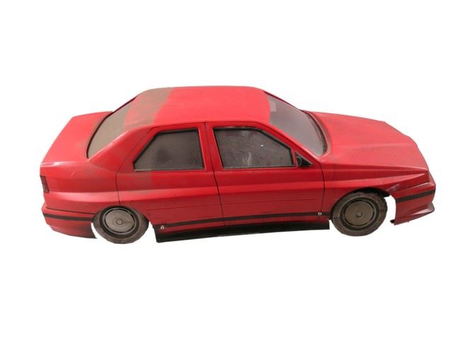 This is a red miniature car with wood frame, featured on screen in the special effects sequences taking place in the New Jersey tunnel in the fuel injected movie Daylight (1996). This miniature was specifically made distressed coupled with rubber tires and European license plates. Created by the legendary Academy Award winning team of Grant McCune Design. (approx. 47" x 18")