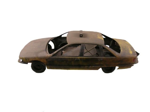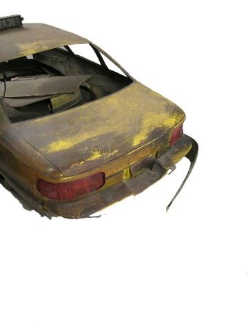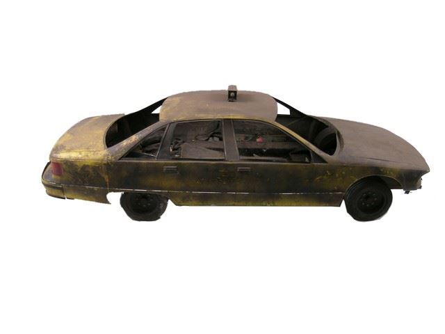 Created and featured on screen in the movie Daylight (1996) is this yellow Taxi plastic and wood framed, model miniature car from the fantastic New Jersey tunnel sequence in Daylight. This car was especially featured in the special effects sequences. This taxi car features a Washington license plate. An incredible miniature created by the legendary team of Grant McCune Design. (approx. 54" x 19")