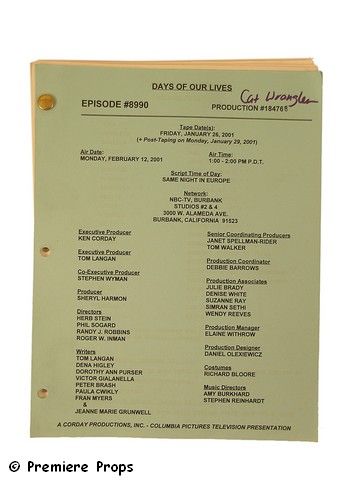 From one of the longest running soap opera's of all time "Days of Our Lives", which has been on the air continually since 1965, here is a production scripts of Episode #8990".