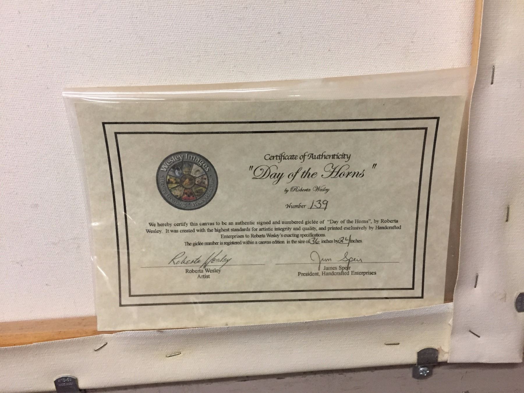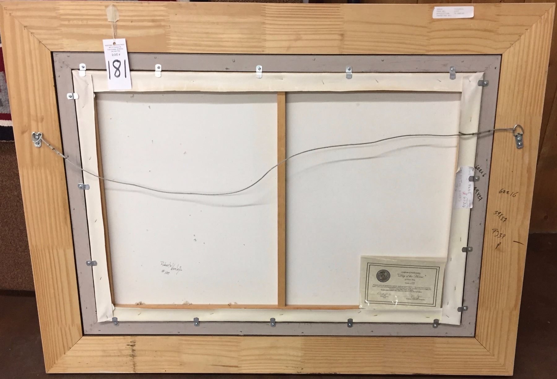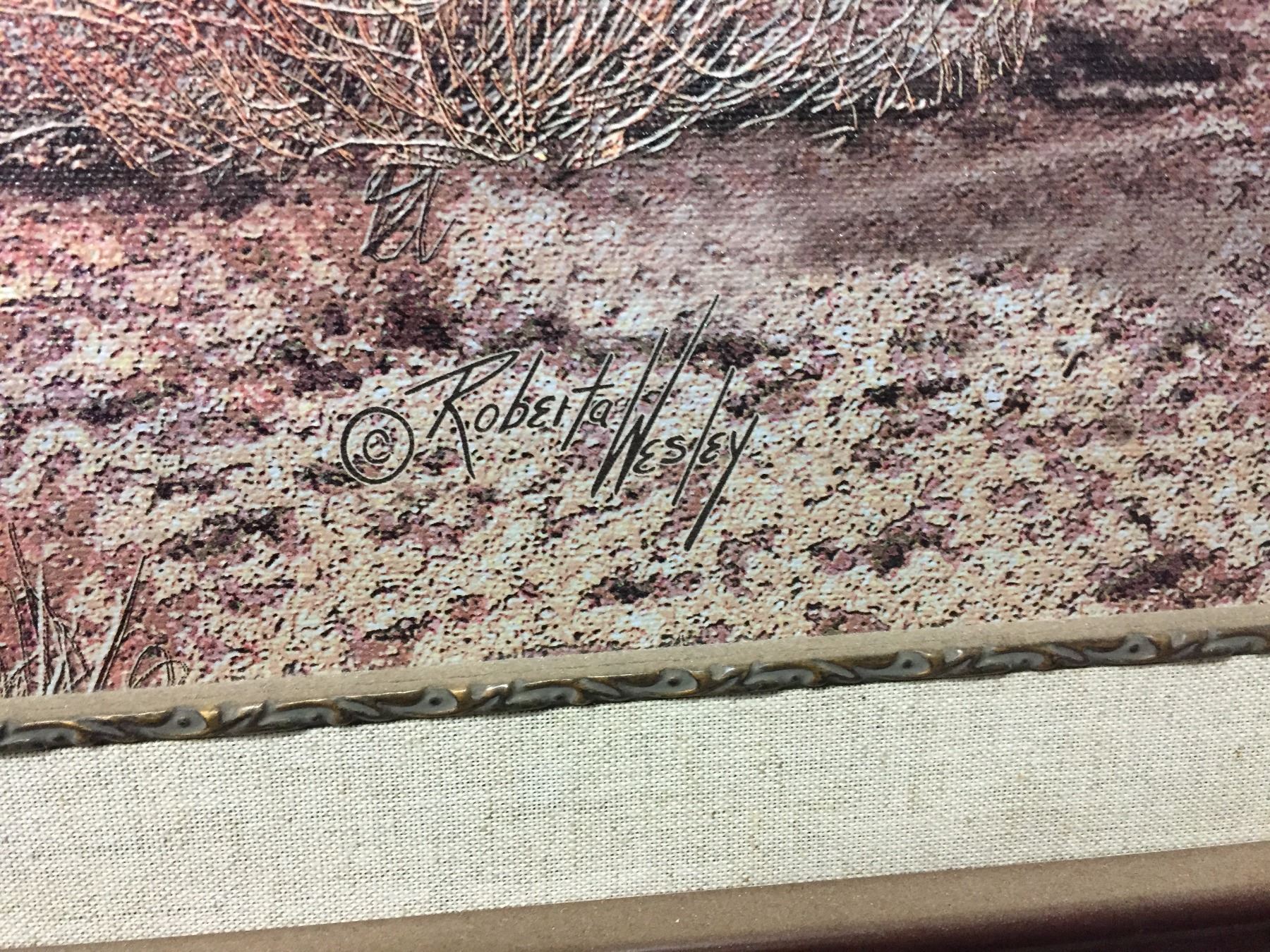 Maker: Robert Wesley. Approx. Age: Fairly modern. Size: 48” X 36” with frame. Additional Info: #139 (comes with certificate of authenticity). Nicely framed. Condition: Good for its age, normal wear expected. Please look closely at the pictures - they are an important part of our description. Shipping: There will be a $20 handling / packaging fee for shipping this lot. The actual cost of postage will be added on top of that.
