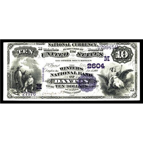 <B>Dayton, OH</B></I> - $10 1882 Value Back Fr. 577 <B>The Winters NB </B></I> Ch. # (M)2604<BR>A bright <B>Extremely Fine</B></I> with the initial appearance of a higher grade. Value Backs were issued only from 1916-1922 and are a considerable challenge to locate from almost anywhere. The census includes 101 $10 Value Backs from the entire state of Ohio, seven of which are from here.
