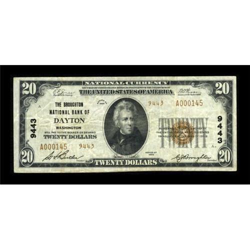 Dayton, WA - $20 1929 Ty. 2 The Broughton NB Ch.