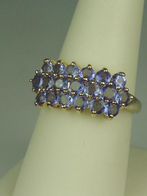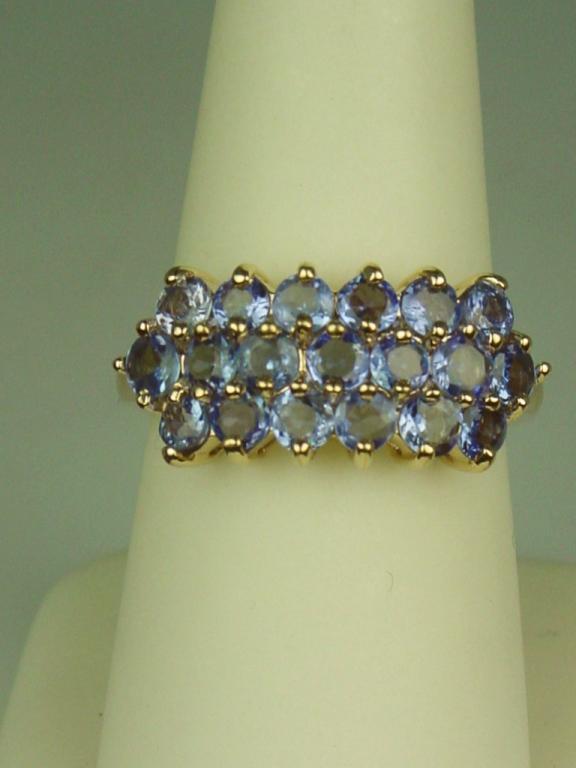 Dazzling 10 karat yellow gold ladies ring set with 19 round fine color Tanzanites weighing approx. 2.00 carats. Retail $995.00 Estimates $300-$600