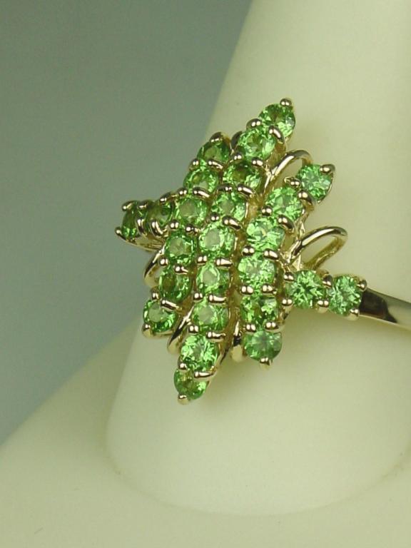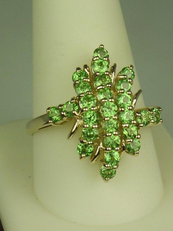 Dazzling 14 karat yellow gold ladies cluster design ring fine set with approx. 2.00 carats in fine color Tsavorite green garnets. Retail $1,450.00 Estimate $400-$800