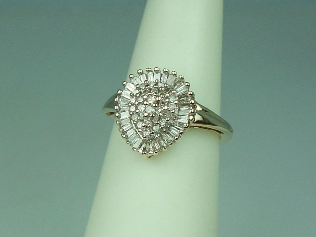 Dazzling 14K YG Ladies Ballerina Design Ring Fine set with round and baguette cut diamonds weighing approx. 0.75 carats of H-I colors and SI clarity. Retail $1,450.00 A nice item.Fine set with round and baguette cut diamonds weighing approx. 0.75 carats of H-I colors and SI clarity. Retail $1,450.00 A nice item.