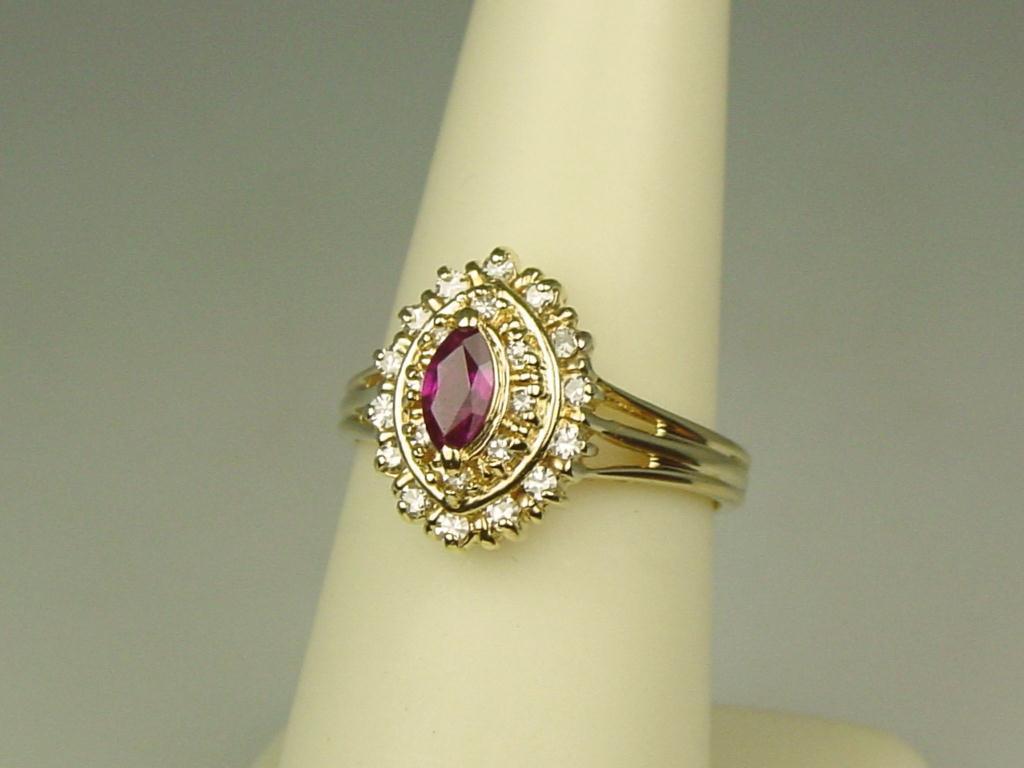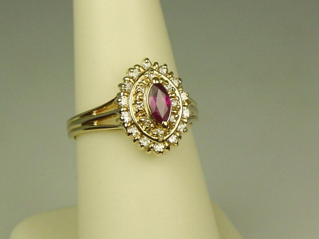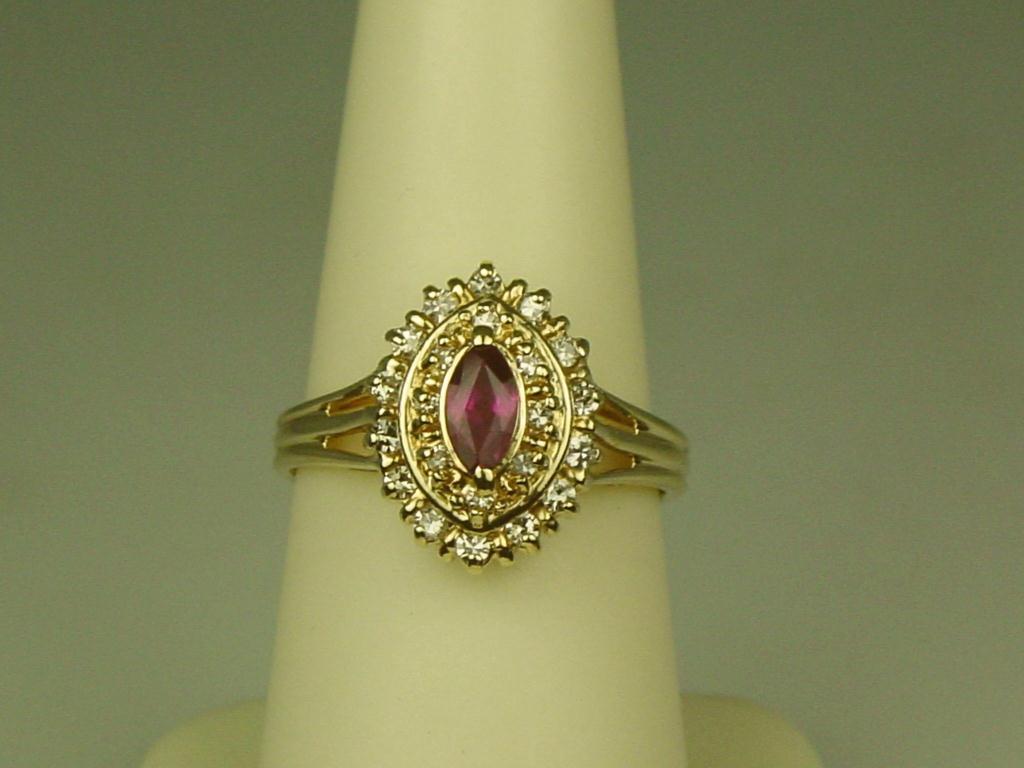 Dazzling 14K Yellow Gold Ladies Ring Set with a center red ruby and pave set with over 22 round diamonds with a total weight of approx. 1.00 carat of G-H colors and VS clarity. Retail: $1,950.00Set with a center red ruby and pave set with over 22 round diamonds with a total weight of approx. 1.00 carat of G-H colors and VS clarity. Retail: $1,950.00