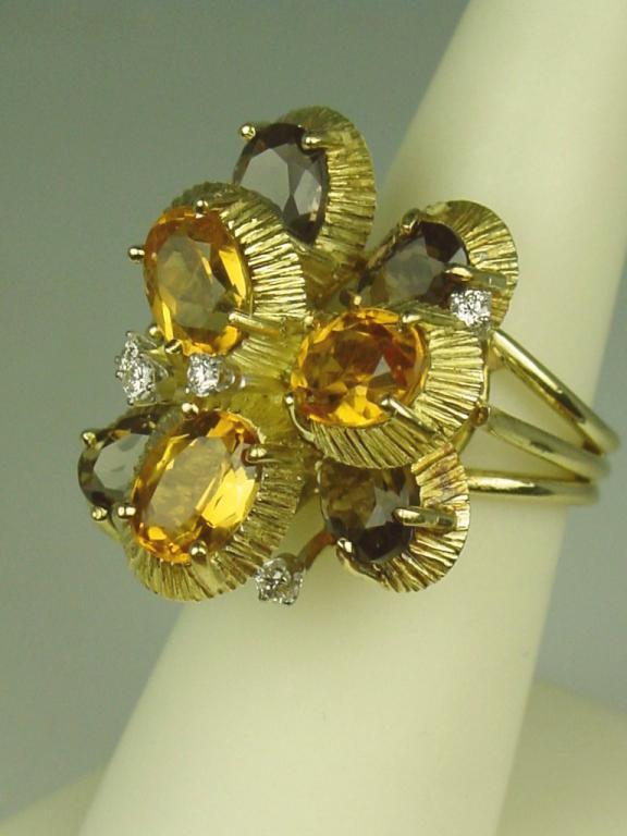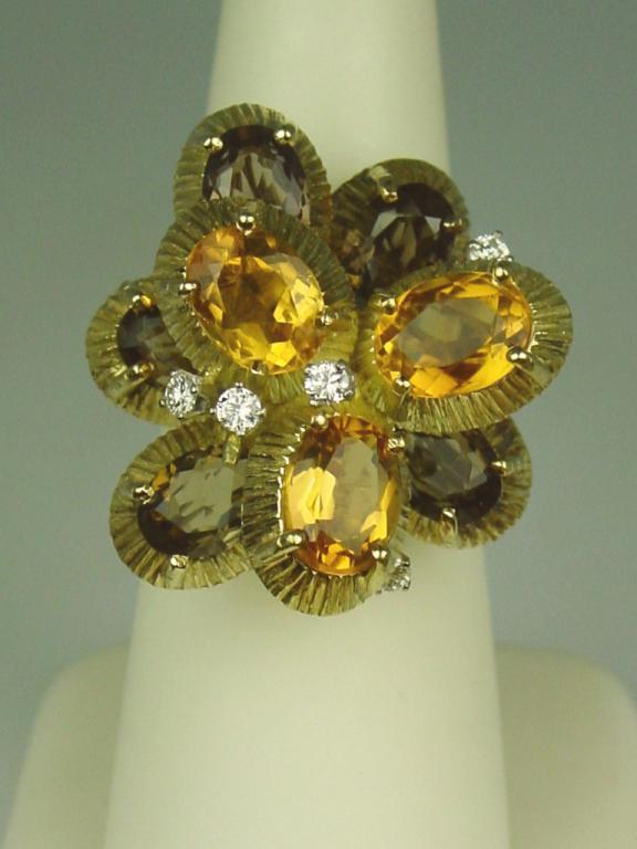Dazzling 18 karat yellow gold very heavy vintage design ring fine set with high quality citrine, champagne topaz and fine diamonds with a total weight of approx. 8.00 carats. Retail $2,750.00 Estimate $800-$1,500