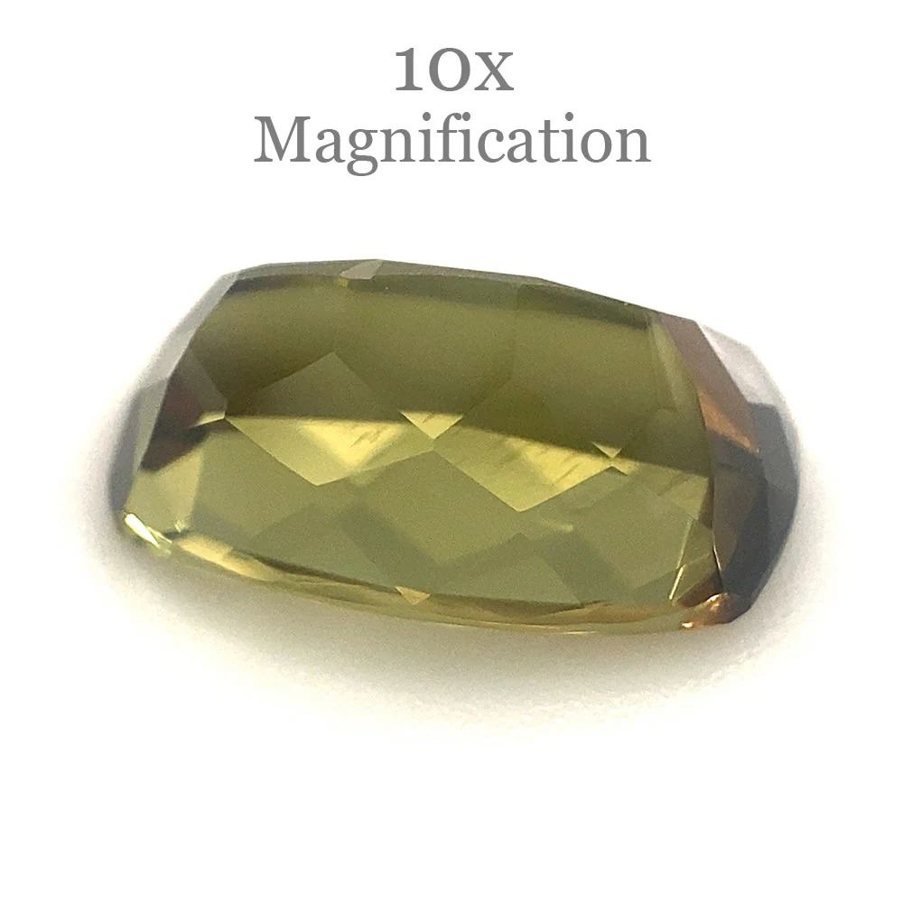 Untreated 2.09 Ct Green-Yellow and Brownish Orange Andalusite is a cushion brilliant cut measuring 10.05 x 6.20 x 4.41 mm. Showcases a medium dark tone and moderately strong saturation. This gemstone is too beautiful to miss! Origin: Brazil. Treatment: None. Please see the certification for additional information.